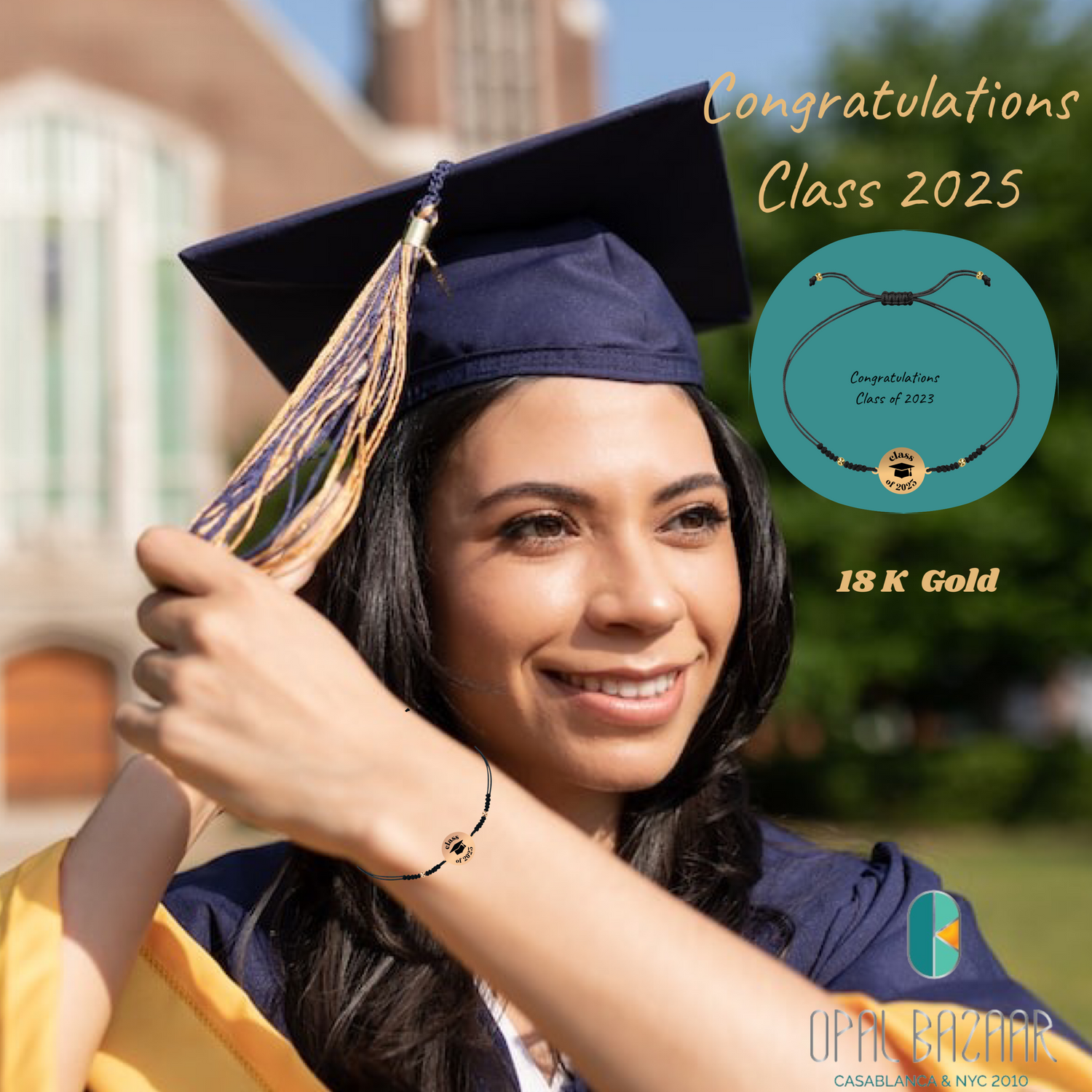 This 18K solid gold macramé bracelet is engraved with Class of 2025 — a meaningful gift to honor your graduate’s journey and future.